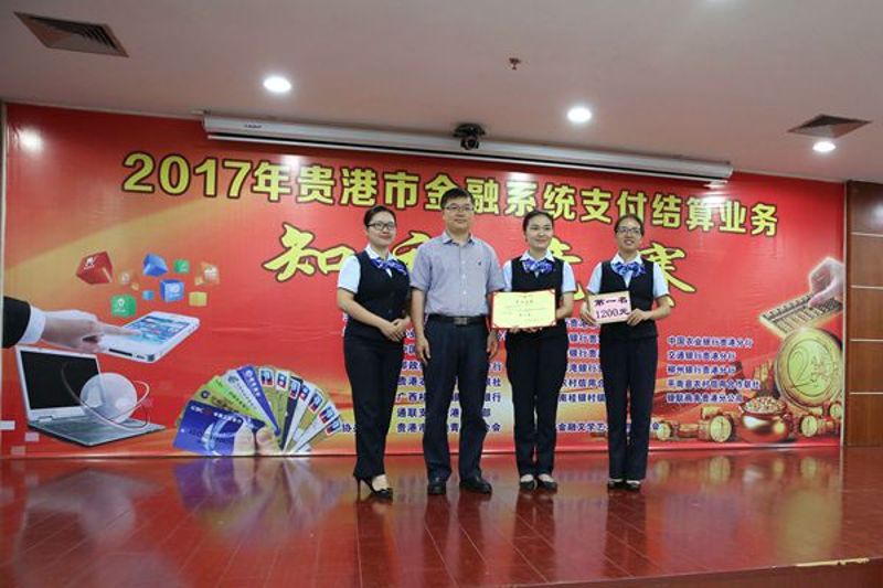 9月1日,人民银行贵港市中心支行联合贵港市总工会、贵港市金融青年联合会举办贵港市金融系统支付结算业务知识竞赛决赛。人民银行南宁中心支行郭勇副行长出席,并为获得第一名的建设银行贵港分行颁奖。支付结算处相关负责人陪同参加。